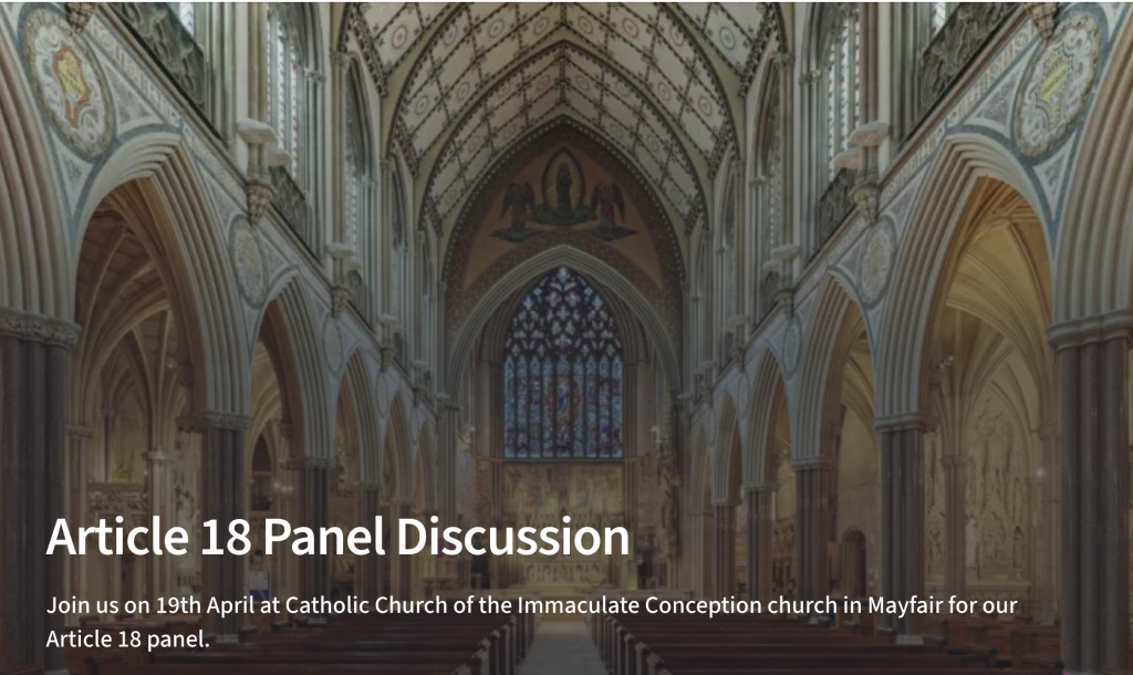 A panel discussion “Dare to Believe – Is Religious Freedom under growing threat around the world”, a hybrid event, is taking place at 3pm on Sunday, 19th April 2026 at Farm Street Catholic Church, W1K 3AH.