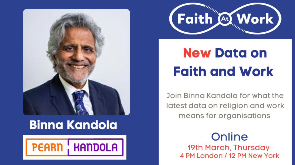 Join workplace expert Binna Kandola on Thursday, March 19, as he unpacks the latest data on religion in the workplace.